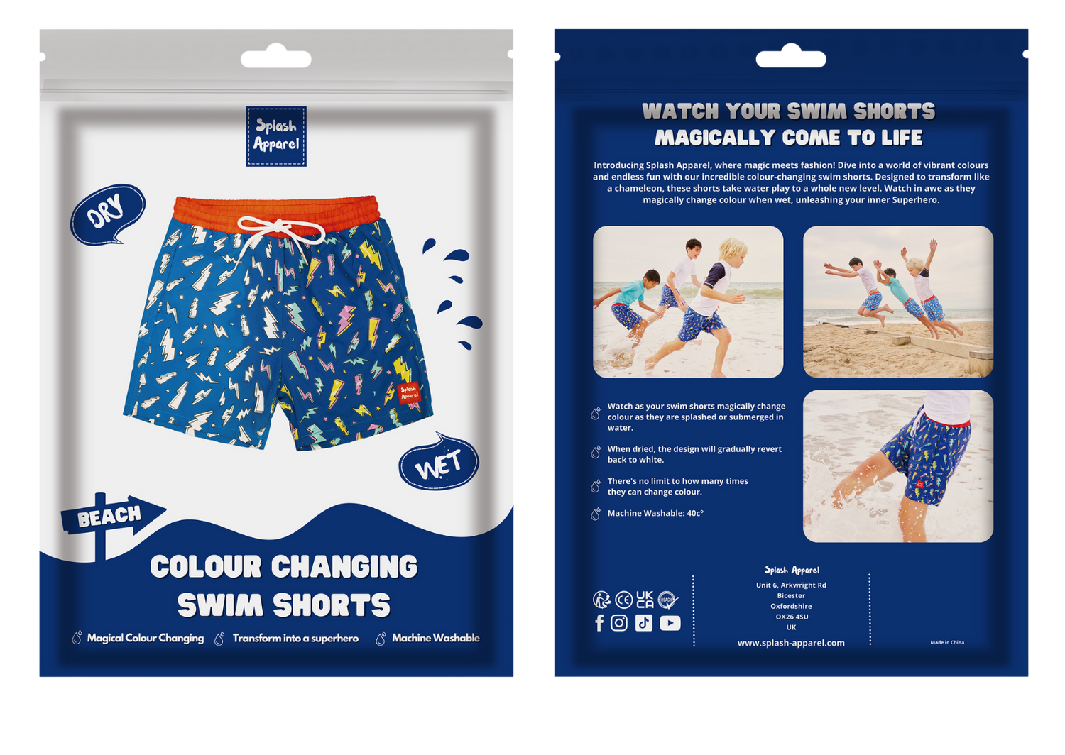 Imagine your child putting on a pair of our color-changing Splash Apparel swim shorts and instantly transforming into a superhero of the water world! With each splash, dive, and dip, they become the masters of their aquatic adventures.